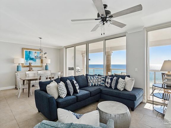 Experience unparalleled Gulf-front luxury at this exquisite 3-bedroom, 3-bath Beach Club condo, located directly on the white sands of Pensacola Beach. Step into a beautiful residence featuring fresh coastal-inspired paint, furnishings, and décor. The expansive living area flows seamlessly onto an oversized private balcony offering breathtaking views of the Gulf, perfect for morning coffee, sunset cocktails, and front row amazing views of the Navy's Blue Angels flight demonstration team. Floor-to-ceiling sliding glass doors bathe the space in natural light and frame the sparkling emerald waters beyond. The open-concept floor plan boasts a gourmet kitchen with granite countertops, stainless steel appliances, and a spacious breakfast bar The great room and dining area offer both comfort and elegance, and the condo easily accommodates up to 8 guests with 3 generously sized bedrooms and a sleeper sofa. The Gulf-front primary suite offers balcony access, abundant closet space, and a spa-like en suite bath featuring a jetted tub, separate shower, and dual vanity. Two additional bedrooms and baths ensure ample space and privacy for guests. Beach Club is Pensacola Beach’s premier and most desirable Gulf front resort and rental featuring indoor and outdoor pools, a state-of-the-art fitness center, and an exclusive 12,000-square-foot spa. Pamper yourself with customized body and facial treatments, unwind in the steam room or sauna, or enjoy a swim in the 60-foot lap pool and whirlpool spa. All of this just steps away from dining and entertainment—making this condo the ultimate Gulf-front retreat and an exceptional investment in coastal luxury.
