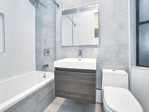 A must see unit! Gut-renovated true 2 bedroom home with top of the line finishes! This unit has the highest ceilings in the whole building with extra bright natural lighting. The renovations include all stainless steel appliances, dishwasher, built-in microwave, and plenty of cabinet space. The bathroom is beautifully redone with a modern feel. Hardwood floors throughout the unit and great closet space, to top it off central air conditioning! PRIME location close to #2 and #3 train, as well as A,B,C,D express subway station! Net effective rent advertised, gross rent $2550 plus a free month.