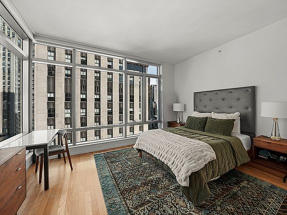 This sun-filled home showcases northwest exposures with floor-to-ceiling windows that frame stunning skyline views. The spacious layout features 10-foot ceilings, a sleek Italian-designed kitchen with premium stainless-steel finishes and state-of-the-art appliances, and a washer/dryer for your convenience. The spa-quality marble bathroom offers a double vanity and deep soaking tub, while generous closet space ensures both comfort and practicality.