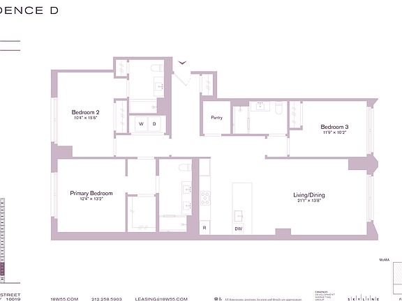 Apartment 3D is a spacious corner 3-bedroom, 3-bathroom thoughtfully designed residence with North and South exposures. Highlights include a separate entry foyer, 9-foot ceilings, and oversized windows. The open-concept kitchen features a sleek breakfast bar, custom Italian cabinetry, and Cambria quartz countertops. A premium Bosch appliance suite includes a gas cooktop (a rare feature in new construction), with a microwave above and oven below, while the refrigerator and dishwasher are seamlessly integrated into the millwork for a clean, modern finish. The ensuite primary bedroom offers a walk-in closet and a spa-inspired, four-fixture bathroom with marble floors, a custom vanity with Cambria quartz countertop, satin nickel fixtures, and an illuminated mirror. Of the two additional bedrooms, one also features an ensuite bath, providing comfort and privacy for guests or family. Additional features include a side-by-side in-home washer/dryer and 5" wide-plank white oak engineered flooring that flows seamlessly throughout the home.
