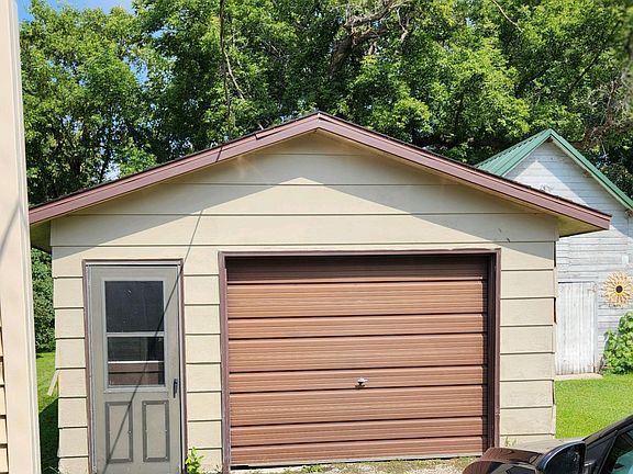 Inviting, cozy home on a tree-lined street, just a half block from school! Some updated flooring and vinyl windows. Main floor primary bedroom. Main floor bath features a jetted tub and ceramic tile. Three-season porch off kitchen. Upstairs includes an expansive bedroom and spacious closet. Detached garage and off street parking.