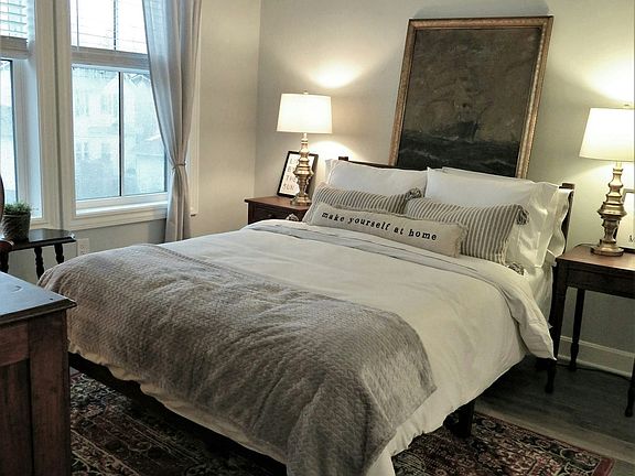 The apartment is equipped with high-end finishes and modern amenities, including stainless steel appliances, granite countertops, and hardwood floors. The bedrooms are generously sized and offer ample closet space for storage.