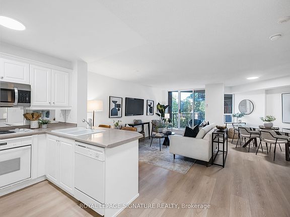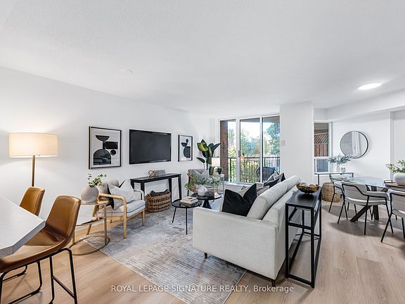 This sought-after, yet rarely available, well-managed building is located in one of Toronto's most desirable neighbourhoods at Yonge and Lawrence. This spacious 1 Bedroom + Den suite offers a perfect blend of charm, function and location. With a bright open-concept layout, this suite maximizes every square foot. The kitchen flows effortlessly into the living and dining areas, creating the perfect space for entertaining. The generous den provides flexibility for a larger dining area or home office, while the bedroom features a large walk-in closet. Step out onto the southeast-facing private balcony where you can enjoy your morning coffee or unwind in the evening with a glass of wine. Perfectly situated overlooking Wanless Ave, a quiet and peaceful residential street. Recently refreshed with new paint and new flooring throughout, this suite is move-in-ready. Parking, locker, and even a bike rack are included for your convenience. Just steps from Lawrence subway station, Yonge Street's cafés, shops, and dining, plus nearby parks and top schools. Residents enjoy low-maintenance fees, and amenities including an exercise room, billiard table, party/meeting room and rooftop terrace with BBQs (all located on 5R), and visitor parking. Enjoy the convenience of the on-site Superintendent Monday - Friday 8AM-12PM and 1PM-4PM.