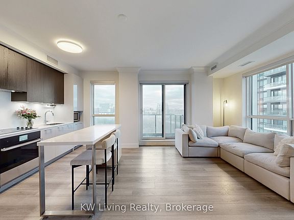 Over 1,000 square feet, this sun-filled corner unit with unobstructed views from the south-facing balcony offers unparalleled premium living in a prime downtown Markham location on Hwy 7. This luxurious building under 3 years new, featuring a spacious and efficient 2-bedroom plus den layout, enhanced state of the art resident amenities, including a gym and pool. The location is paramount for convenience: Steps to Whole Foods, and LCBO, and minutes to VIP Cineplex, and Good Life, bustling Main St. Unionville, with public transit right in front, plus 5 minutes to Highways 404/407 and the Go Train. The unit includes a Kitchen Island, premium integrated/S.S appliances (Stove, Microwave, Fridge, B/I Dishwasher), in unit Washer/Dryer, Window Coverings, and Parking & Locker are included.