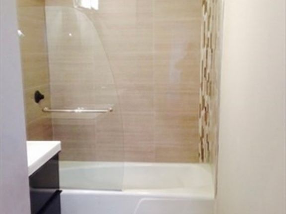 Beautifully tiled showerFloating sinkEat-in kitchenCommon backyardElectric stoveStainless steel appliancesOne off street parking