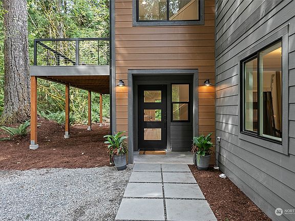 Step into contemporary luxury with this brand new home nestled in an old growth grove! Boasting an open concept layout, including a chic first-floor mother-in-law suite with private entrance. The suite is complete with a kitchenette, bedroom, and bathroom. The third floor reveals a private primary suite with three closet spaces and bonus room. Enjoy a serene escape on your private 300 sq ft deck surrounded by lush greenery, trail to Beaver Creek and old growth trees. Located in the convenient Gate 13, ten minutes from Bellingham with a flat road and easy winter access. An adventurer's dream, backing onto Stimpson Family Nature Reserve, walking distance to Lookout Mountain, an EV plug in and a 30 second bike ride to access Galbraith trails.