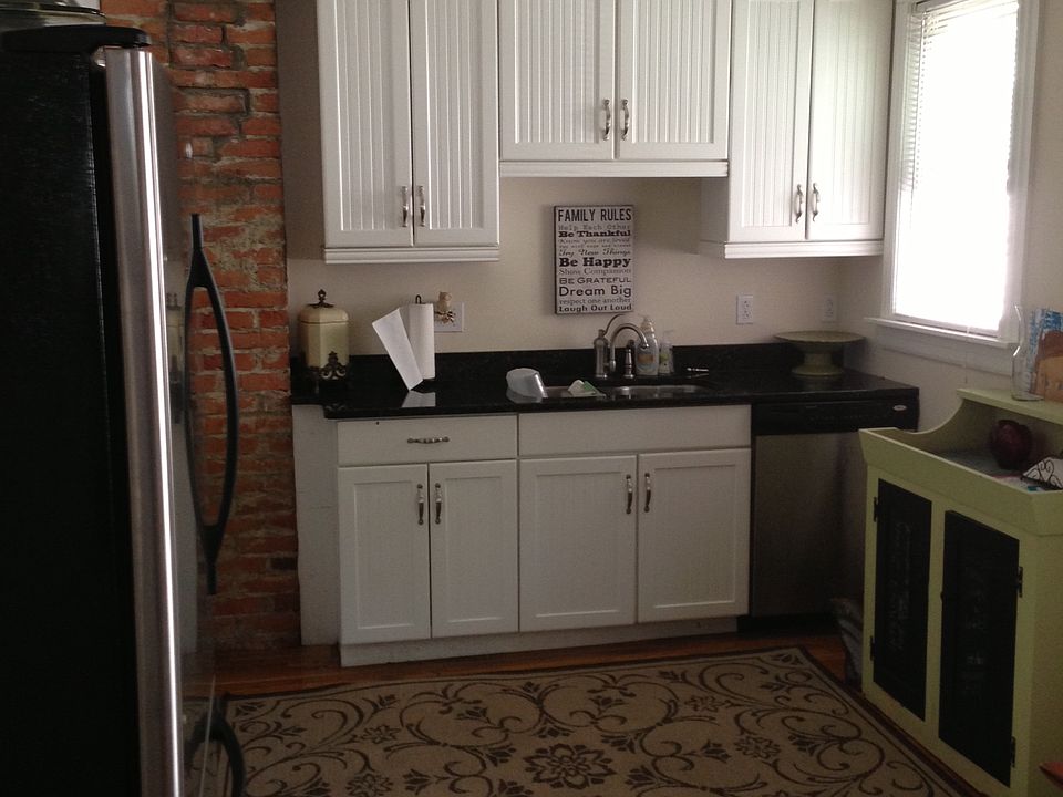 Walk to town. Three bedroom apartment with third floor master bedroom/bath. Two bedrooms and full bath on second floor. Full basement with laundry. Two off street parking spots. Fenced in courtyard.