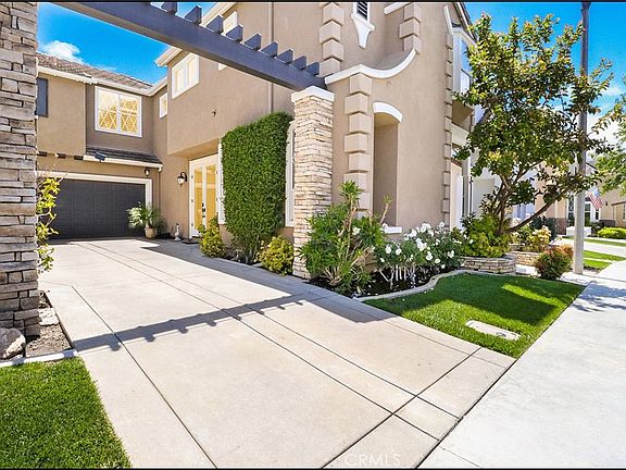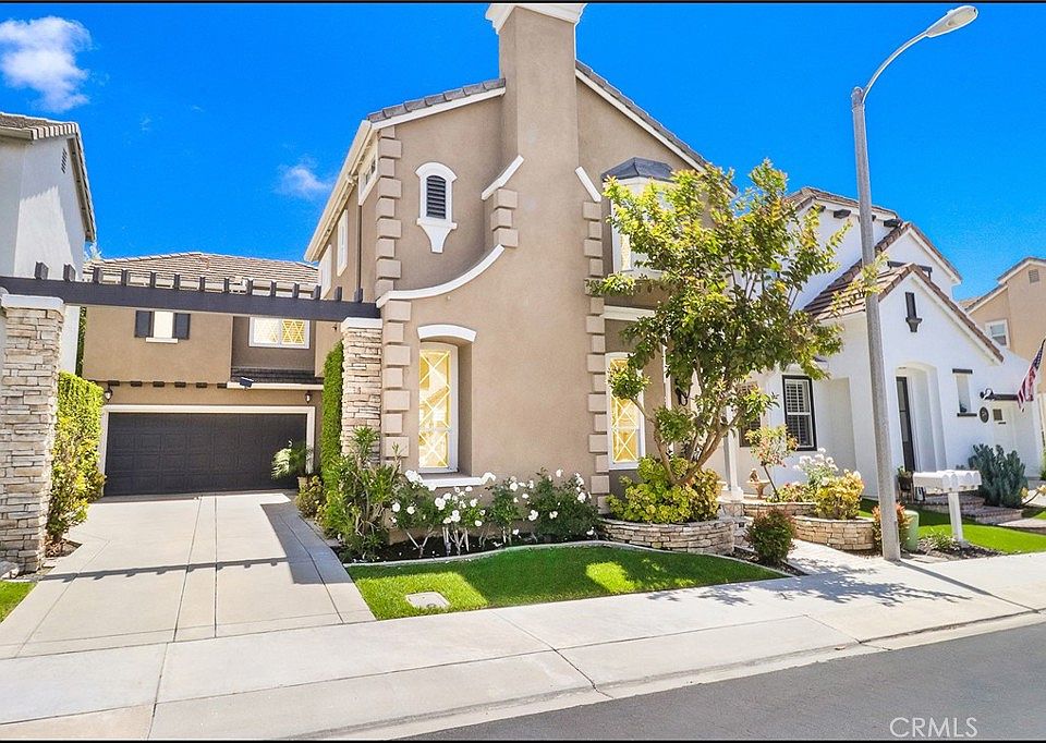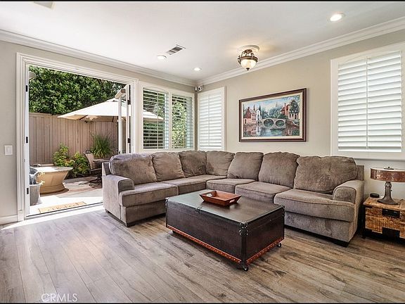 EXCEPTIONAL VILLAGE COTTAGES PROPERTY OFFERING A SPACIOUS FLOOR PLAN, LONG DRIVEWAY AND UPGRADES THROUGHOUT! Exceptional location within the private gated community of Village Cottages, this Canterbury home offers a spacious floor plan with large living room featuring a fireplace and separate formal dining room, spacious kitchen with center island and bar seating, pendant lighting, designer stone accents and stone countertops, stainless steel appliances and open to the large family room featuring custom built-in cabinets/entertainment niche including home theater surround sound equipment and French doors, open to the rear patio with planters and fire pit (included). There is also a large breakfast nook area off the kitchen with a second set of French doors leading to the recessed driveway which can easily double as additional outdoor entertainment area. Main floor also features a powder room with upgraded vanity and fixtures and direct access to the attached garage with added EV plug. Custom staircase with white risers leading to the spacious second story with large landing area, 4 bedrooms including the spacious master suite offering a large master bathroom with separate tub and shower enclosure, large and upgraded vanity with stone countertop, dual sinks, upgraded fixtures and large walk-in closet with closet organizers. Second story also features a conveniently located full size laundry room with deep sink and ample linen cabinets, full hall bathroom with upgraded vanity featuring stone countertop, dual sinks and tub and shower with glass enclosure. Upgraded flooring and baseboards, custom crown molding and plantation shutters, added/upgraded ceiling fans, recessed lights and fixtures, owned solar system with 20 panels installed in August 2022 with a 25-year warranty from installed date, custom window treatments including Hunter Douglas battery-operated blinds controlled by a Powerview Hub, smart locks with electronic Schlage locks, Ring doorbell, two outdoor solar-powered cameras, Nest thermostat and three indoor cameras. All this plus community pool, walk to Oak Park and recreation directly across with playground and basketball court, walking distance to highly sought after schools, easy toll road (73) and beach access (via 133), excellent proximity to Aliso Viejo Town Center with shops, restaurants and entertainment and nearby hiking, biking and Nature Trails!