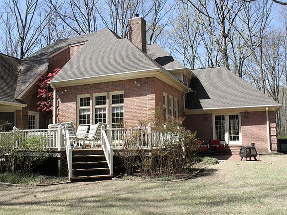 A rare beauty in the highly sought-after Timbers neighborhood. This 4 BR 3.5 BA home sits at the end of a long, winding driveway, secluded on almost 2 acres and nestled among mature hardwoods. The view from the backyard is breathtaking: private and wooded, with a wrought-iron fence and a treehouse! Home has been thoughtfully and lovingly updated & boasts a completely renovated farmhouse kitchen with gourmet gas range, granite countertops, wine fridge and bucketloads of charm. The 1st floor is the library with custom bookshelves, accent lighting & stunning view of the property. The great room features a floor-to-ceiling brick fireplace and windows that let in plenty of natural light. Hardwood floors throughout the 1st floor. The master suite offers tons of privacy with french doors that open onto its own brick patio in the backyard. Located in Madison County just outside of Jackson, TN.