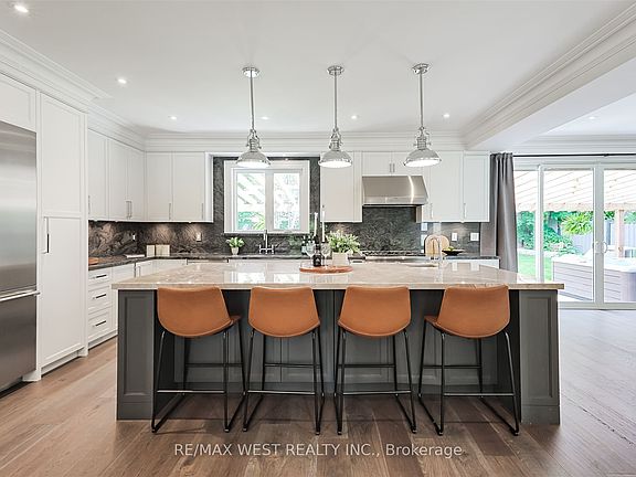 Located On One Of The Most Desirable Streets In The Bluffs, This Impressive Hill Crescent Residence Offers Exceptional Quality, Thoughtful Design, And Outstanding Functionality. Set On A Rare 100FT Wide Lot, The Exterior Combines Timeless Stone And Durable Vinyl Siding, Accented By Landscape Lighting, A Heated Dble-Wide Driveway, And A Covered Front Veranda With Clear Cedar Tongue-And-Groove Ceiling. The Fully Fenced Backyard Is Ideal For Entertaining, With Professional Hardscaping, Mature Trees Providing Privacy, And A Custom Timber-Frame Pergola Over The Patio. Inside, The Grand Foyer With Marble Flooring, Dble Closets, And Wide Staircase Sets The Tone For The Homes Refined Finishes. Wide-Plank Engineered Oak Floors, Plaster Crown Moulding, Pot Lighting, And Custom Fireplaces Are Found Throughout. The Gourmet Kitchen Features Soft-Close Cabinetry, Quartzite Countertops, A Dramatic Backlit Island, And Top-Of-The-Line Thermador Appliances, Including A Dual-Fuel Range And Undercounter Wine Cooler. Upstairs, Cathedral Ceilings Enhance The Spacious Family Room With Custom Gas Fireplace And The Well-Appointed Bdrms. The Primary Suite Offers A Walk-In Closet, Gas Fireplace, And A Spa-Like 5-Piece Ensuite With Marble Accents, Glass Shower With Rain Head, Freestanding Tub, And Dble Vanity. Additional Bdrms Feature Cathedral Ceilings, Custom Window Coverings, And Generous Closet Space. A Self-Contained Lower-Level Apartment With Separate Entrance, Modern Kitchen, Heated Porcelain Flrs, And Full Bath Provides Excellent Flexibility For Extended Family Or Rental Potential. The Heated Garage Is Ideal For Car Enthusiasts, With Epoxy Flrs, Dble-Height Ceiling, Water Access, And Convenient Drive-Through Capability. This Meticulously Maintained Home Is Steps To Parks, Trails, And The Waterfront, With Downtown Toronto Just A Short Drive Away. A Rare Offering In A Family-Friendly, Nature-Focused Community. This Home Is An Opportunity To Live In True, Unsurpassed Turnkey Luxury.
