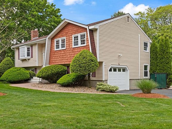 Welcome to 18 Winsor Rd in Billerica, set on a rare 0.96 acre lot on a quiet dead-end street! This move-in ready home features 4 bedrooms and 1.5 baths. The main level offers a bright layout with abundant natural light, an updated kitchen with granite countertops, stainless steel appliances, and a tile backsplash. The dining area opens to a rear deck overlooking the spacious, fenced-in backyard.Three bedrooms and a full bath complete the main level. The lower level offers a spacious recreational room with a cozy wood-burning fireplace, 4th bedroom, half bath, utility/laundry area, and direct entry to a 1-car garage.Enjoy the expansive yard—perfect for entertaining, gardening, relaxing by the firepit or soaking in the sounds of nature from the deck. Features include renovated baths, 50-gallon hot water tank (2023), 2-zone split A/C, 3-zone forced hot water heating, irrigation system, 1.5 gallon septic tank system (2010) and more.Buyers to verify all and any information