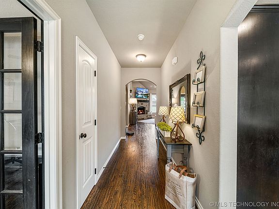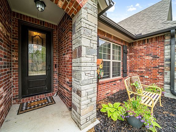 Stunningly Beautiful CUSTOM BUILT 1 OWNER HOME with HIGH END Finishes. No builder grade to be found in this 4 bedroom 3 full baths with true home office, situated in the desirable Wood Creek Addition of Pryor OK. Elegant class abounds throughout this well maintained and tastefully decorated beauty on a roomy 0.79 acre lot. The attractive solid wood entry door screams WELCOME! to this truly gorgeous home featuring hand scraped hardwood floors, luxury tile & granite countertops. 12 ft Vaulted Beamed ceiling Living to Gorgeous cooks Kitchen with Granite Island open to Living with woodburning stone fireplace, SS Frigidaire Gallery Appliances, Convection Oven, Cooktop, Walk in Pantry, Soft Close Cabinets w/ Lower Cabinet Drawers, Dining open to Kitchen & Living. Primary Bedroom w/ tray ceiling, private entry to the covered back patio, large walk in closet with direct access to Laundry room, Primary Luxury Bath, Separate sinks, Granite counters, Soaking Tub, Glass enclosed tiled shower. Split floorplan, 2nd and 3rd Bedrooms located downstairs, shared Hall Bath. 1 Bed, Full Bath & Game room upstairs. The Covered Back Patio and Fire Pit are perfect for sunset views and relaxing at the end of a long day! 3 Car Garage w/ inground safe room. 2 Waterheaters, 2 HVAC systems. Spacious floored attic. Quiet Neigbhorhood, Great Neighbors, Super location. Close to Hwys 69 & 412, The District, MAIP and all things Pryor.