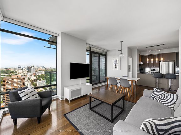Discover refined living at 18 Yorkville Avenue #2905, a stunning two bedroom, two bathroom corner suite nestled in one of Toronto's most prestigious neighbourhoods. This suite showcases an ideal split bedroom layout, with floor to ceiling windows throughout, and breathtaking views of Midtown and the West end. Elegant hardwood flooring flows throughout the suite, complemented by an array of recent upgrades: a Smart Home thermostat, sleek stainless steel appliances, a luxurious Jacuzzi tub, and remote controlled Hunter Douglas window treatments in every room. Included in the rent is parking, locker, water, heat/AC, plus full access to top of the line amenities such as a gym, sauna, 24/7 concierge service, games room, meeting and study spaces, visitor parking, and much more. Steps from Bloor-Yonge Subway, easy access to the DVP, and the most exclusive fine dining in the city, experience the best of Yorkville living in a residence that cannot be missed! Can be leased with current furnishings.