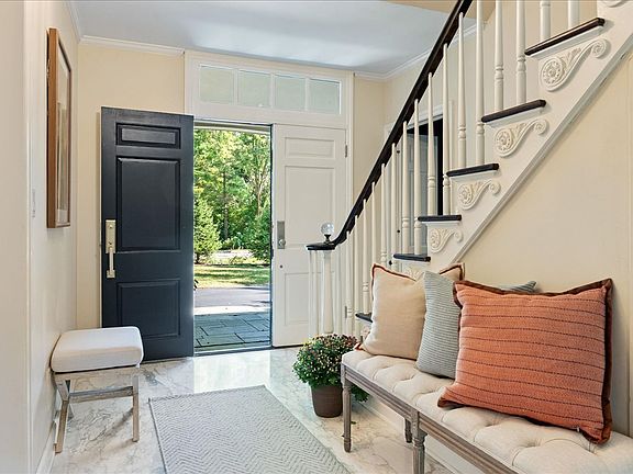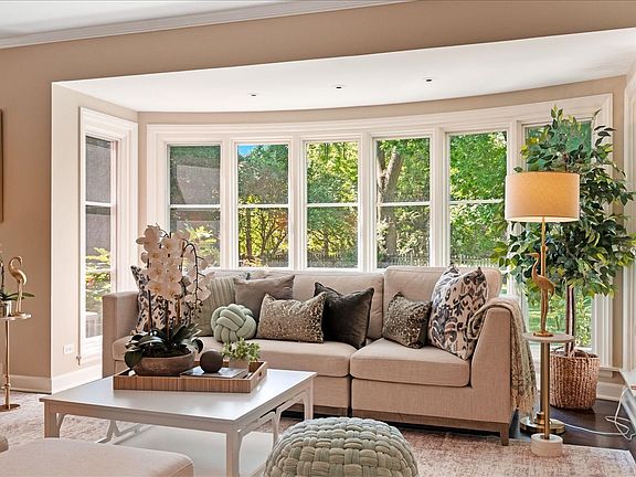 Storybook Cape Cod set on enchanting Apple Tree Road complete with that magical sidewalk to Crow Island School, this red brick colonial accented with classic black shutters and white trim offers timeless comfort in a very special nook! Nestled on a lush half-acre lot with mature trees, a circular drive & attached 2-car garage accented by plantation shutter windows, this home radiates charm with fantastic curb appeal. Inside, the formal entry opens to a cozy wood-paneled office with a bay window overlooking all everyday activity. A sun-filled four-seasons room flows seamlessly into the inviting living room with marble surround where oversized windows frame panoramic views of the huge backyard. The central dining room connects the home's entertaining spaces, leading to the oversized family room with custom built-ins, WBFP and expansive floor to ceiling sliding doors to the entertaining patio & backyard oasis. The front-facing Chef's kitchen keeps you connected to the comings & goings of this special street, featuring granite c-tops, custom cabinetry, s/s appliances & island with breakfast bar seating. Eat-in dining space is ripe to be opened to family room for an open concept dining to great room. A second office/guest bedroom off the mudroom with laundry provides flexibility. Expansive 2nd floor with primary suite overlooking the lush backyard & boasts a walk-in closet with spa bath. Two additional bedrooms share a hall bath, while a fourth bedroom w/2nd staircase down is ideal for guests or an au pair. The lower level offers abundant recreation space, ample storage, and 2nd laundry room. Perfectly positioned steps to Crow Island, New Trier, and Loyola, this home delivers on location & North Shore lifestyle. Warm, welcoming, and brimming with even more ways to bring this home to a new level of luxury, 180 Apple Tree Lane is ready for a touch of 2025 designer vision as you are already in the most premier A plus location as it's all here!