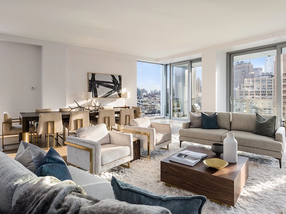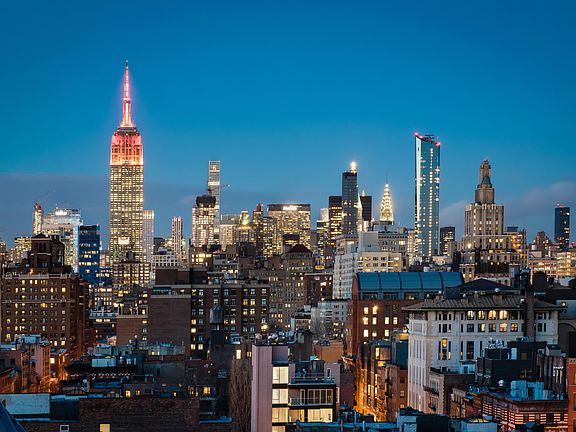 Large 4-Bedroom Penthouse with 3 Terraces and 360 degree views of the city PHC at One Vandam is a magnificent, newly constructed, full-floor penthouse condominium with approximately 4,759 square feet, 5 bedrooms, 4.5 baths, a library, and 3 outstanding terraces. Stunning sunlight and breathtaking views encompassing the Manhattan skyline, Empire State Building, Chrysler Building, Freedom Tower, and downtown Soho streetscape are received throughout the home's four exposures. Constructed by BKSK Architects with interiors by Studio DB, this outstanding home features quarter sawn white oak flooring, two marble wood-burning fireplaces, massive floor-to-ceiling windows throughout the residence, automated shades installed in all bedrooms, and an efficient full laundry room with a large closet. There is radiant floor heating throughout the living room, primary bedroom, library, and all four of the full en suite bathrooms. PHC is the only full floor apartment in the building. Intelligently designed, the apartment is completely pre-wired for media and audio technologies, and each room has its own independent climate control system. Abundant storage is afforded throughout, including a coat closet in the entry gallery, plus three large closets in the interior hallways, each outfitted by California Closets. The recently built One Vandam affords luxurious services and amenities, which include a 24-hour doorman/concierge, private fitness center, residents' lounge with a large-screen TV and catering kitchen, landscaped communal terrace, bicycle storage, and a full-time superintendent. Perfectly positioned in the heart of downtown, One Vandam is located between Prince and Spring Streets in vibrant Soho. Adjacent to the West Village and Tribeca, One Vandam offers immediate access to some of the finest dining, shopping, and entertainment New York City has to offer and is just moments from major transportation lines. This apartment's monthly common charges will vary, as they include utilities.