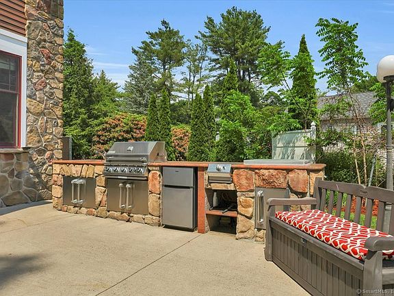 Stunning, completely gutted down to the studs, expanded and rebuilt in 2009 to 4 bedrooms, 3 full & 2 half baths. Welcome to 180 Batterson Park Road, a very special craftsman-style home offering stunning Batterson Pond views & a convenient Farmington location just minutes from highways, shopping & UConn Medical Center. Enjoy serene water vistas from the front of the house & from the thoughtfully designed outdoor living spaces. A large stone patio, outdoor kitchen & fountain create a perfect setting for entertaining & relaxation. On the interior, the open floor plan flows seamlessly through the dining, living, & family rooms, all w/ hardwood floors. A wood-burning fireplace is the focal point of the family room. The spacious kitchen features granite counters, stainless steel appliances & connects to a light-filled sunroom w/ vaulted ceilings and a cozy wood stove. A private office tucked away on its own hallway & a half bath complete the main level. Upstairs you'll find four bedrooms, including the primary suite which boasts beautiful Pond views, a full bath w/ soaking tub, shower, and walk-in closet. Another bedroom has its own en-suite bath, while two bedrooms share a hall bath. A laundry room adds convenience. The lower level is partially finished w/ a playroom, a half bath and a gym. The backyard offers mature trees, landscaped beds, walking paths, and a wood deck, creating a quiet retreat. Features: central A/C, natural gas heat, public sewer, whole-house generator