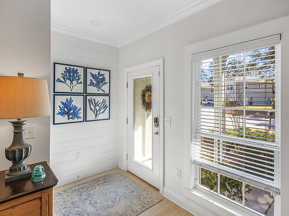 Under contract. Accepting backup offers. This coastal home, located on a cul-de-sac and backing into a private preserve area, offers a serene and picturesque setting. With four bedrooms and three and a half baths, the home features a spacious, open floor plan that seamlessly connects the kitchen, dining, and living areas. The two-story design includes a master suite on the first floor, providing convenient and private living. Upstairs, you'll find three additional bedrooms and a bonus room, offering ample space for various needs. Craftsman details, such as shiplap and tongue-and-groove wall and ceiling inserts, add character and charm to the home. The screened-in patio extends the living space outdoors, while the two-level backyard, complete with a retaining wall and fire pit, is perfect for entertaining or relaxing in nature. There is a two car garage. This home is being sold unfurnished. Please note that the Ring doorbell will not convey with the property.