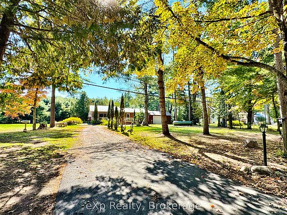 Looking for a home that has space to play, close to amenities and big lake water access? Look no further. This spacious home is located minutes from Highway 11 in beautiful Bracebridge. From the towering trees to the level lot this wood clad home calls your name. A large deck at the front is perfect for watching the boat traffic go by on the Muskoka River leading into Lake Muskoka. Across the road is your private dock with swim ladder for that refreshing dip. Open the front door to a home with so many possibilities. Bedrooms? There is potential for 3 all on the main level. Need an office, den or even a nursery? Easy to adapt a room to suit your needs. The best room of the house? A Great Room with cathedral ceilings, a large patio door to the front deck and a gas stove for a cozy ambiance and alternative heat source. Romantic evening required? The primary bedroom has a gas fireplace too. The lower level has a spacious family room complete with another gas stove, a room great for crafting or storage plus a 3 piece bathroom. A favorite of many is the centrally located wine fridge so coming in after a long day, cooking dinner or heading to put your toes up a cool beverage is an easy grab. The side door leads to a 2 p bathroom and laundry area so no mess being tracked thru the house. Want a little more privacy for entertaining? The back patio has a BBQ station PLUS a separate building with a sauna! This multifunctional property has a bonus building perfect for a workshop, small business or even a pool table for a man cave