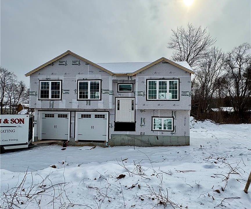 NEW Construction! Sitting upon a half acre of cleared land, this oversized open concept Raised Ranch is located on the Woonsocket/Lincoln line and is close to all major highways yet in a private neighborhood! This home features 3 large bedrooms which includes a master suite w/ private full bath & walk in closet, an additional full bath, gorgeous over-sized windows letting in tons of natural light, cathedral ceilings, slider to deck, custom kitchen w/granite & stainless appliances, beautiful hardwoods throughout, central air, 2 car garage, a finished lower level with a 1/2 bath/laundry area, common area, storage & another slider that you walk out of to access your yard. This home is in the process of being built and expected to be finished in early May 2025. There is still time to pick your colors!