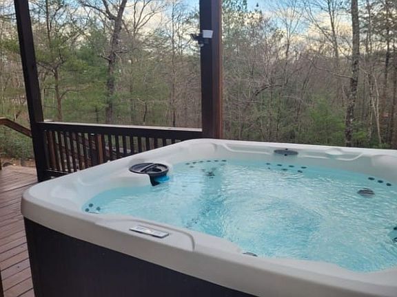 Private jacuzziOutdoor jacuzziFully equipped kitchenGame roomSmart tvLaundry roomCentral air conditioning