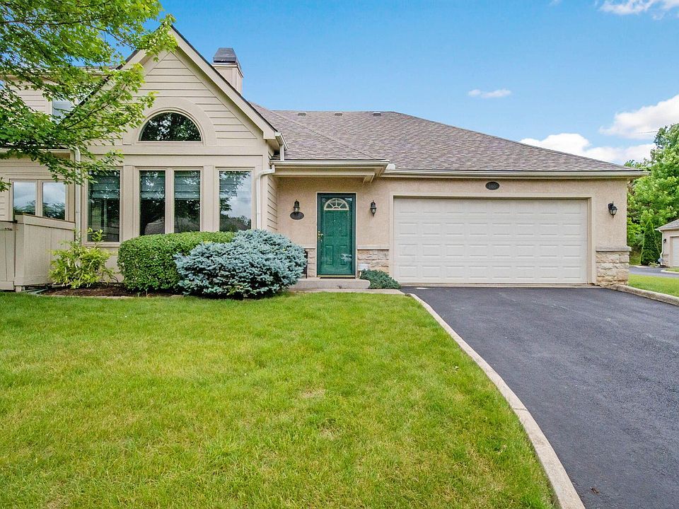 Introducing this spacious home featuring 3 bedrooms and 3 full baths with over 2,000 sq. ft., complemented by vaulted ceilings and a two-sided fireplace for a touch of luxury. The elegant primary suite has vaulted ceilings, tremendous walk-in closet, extra double linen closet and en suite bath with double sinks. Enjoy the convenience of a 2-car garage, first floor laundry and ample storage space throughout. The open-concept living area is perfect for entertaining, while the modern kitchen showcases top-of-the-line finishes. Located in a desirable neighborhood, this condo offers both style and functionality. Community features pool, pond with fountain, clubhouse & fitness room. Big updates include New Furnace '22, Water Tank '23, Pella Casement windows '22, Quartz '21, Roof '19 and more.