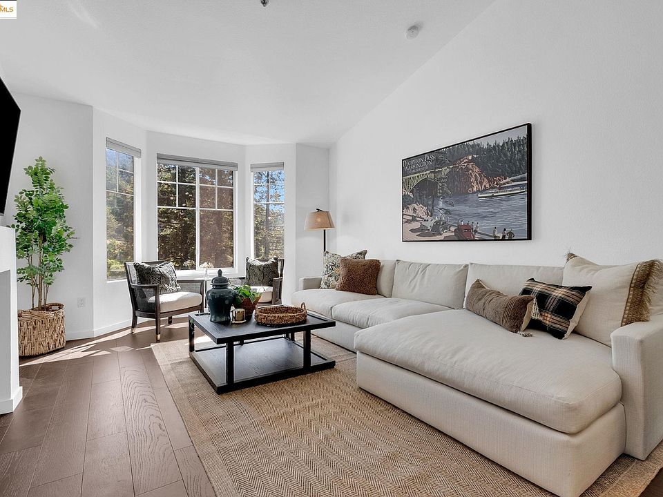Step inside this beautifully updated 1-bedroom, 1-bath home in the desirable Parkwoods community and immediately feel the openness of vaulted ceilings and walls of natural light. The spacious living area flows to a private balcony—ideal for morning coffee or evening relaxation. The bedroom offers a quiet retreat with double windows that frame the greenery outside, adding both light and privacy. Upgraded flooring runs throughout, while the kitchen features granite countertops and the bathroom is finished with elegant stone flooring. The home also includes the rare convenience of an EV charger in the garage. Parkwoods offers gated entry, a pool, spa, fitness center, and clubhouse, all with easy access to Rockridge, Montclair, BART, and major freeways—making this home both serene and highly connected.