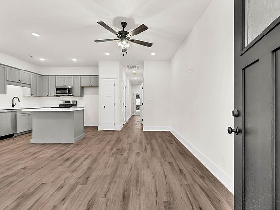 Stunning new construction home in a prime location! This beautifully designed 3-bedroom, 2.5-bath townhome includes a deep rear-entry garage, a contemporary open-concept floor plan connecting the kitchen, dining, and living areas—perfect for both everyday living and entertaining. The main level features laminate flooring throughout and a spacious kitchen island that anchors the room. Cook in style in this gourmet kitchen with stainless steel appliances, plenty of custom cabinetry provides a high-end look, and the large pantry delivers excellent storage. Retreat upstairs to the generous primary suite featuring a full private bathroom and a large walk-in closet. Two additional bedrooms are upstairs, as well as a second full bathroom, and laundry, offering plenty of space for family, school roommates, guests, or a home office setup. Just a short walk or bike ride to Downtown Clarksville and Austin Peay State University, this is the ideal location for the Madison Street corridor and all Downtown amenities. Only 25 minutes to Fort Campbell and 50 minutes to Nashville. Exterior features include covered front porches, sidewalks, rear-entry garages, and durable Hardie Board construction. Garage is 8' wide and 21' deep with electric remote door opener and insulated doors. Must see home!