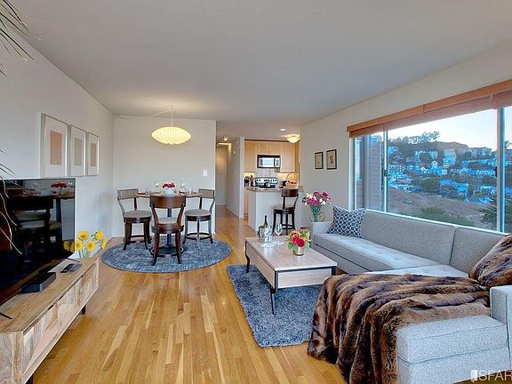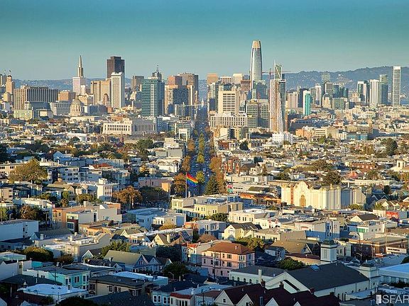 Be prepared to be awestruck by the sweeping views from this modern penthouse unit. Located at the end of Corwin Street, nestled against Kite Hill, is this top floor end unit, washed in sunlight and with views that stretch from the hills of Corona Heights to the downtown skyline. The open concept living space has wood floors large windows and opens to a private view deck with an amazing vantage point, dead center down Market Street to the Ferry Building. The kitchen is updated with stone counters and stainless appliances and also showcases the picturesque views. The well thought out floor plan includes two spacious bedrooms, including the master with amazing views and one full remodeled bathroom. This property is part of a 6 unit Tenancy In Common and includes storage, shared laundry and one car side by side parking. The location, next to Kite Hill, offers a park-like atmosphere and a short walk to neighborhood shops, restaurants and entertainment.