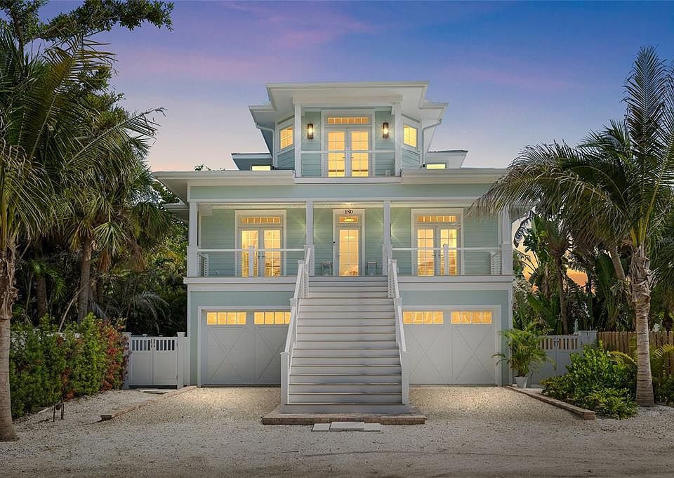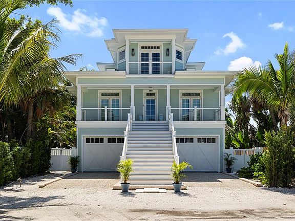 Coastal Luxury Meets Thoughtful Design – Completed in October 2024, this beautifully crafted 4-bedroom, 3.5-bath residence offers a perfect blend of coastal charm and modern luxury. Inside; engineered white oak hardwood & custom tile work throughout, accented with Serena & Lily wall coverings and Pottery Barn window treatments elevating the interiors. An elevator all three levels and two sets of washer/dryers on the two elevated living levels add comfort and convenience. The main living level features two en-suite bedrooms & bathrooms, tasteful dining area including bar cabinets for ease of service off the kitchen & bar dining features off the living room, also overlooking the waterfront! The Master level offers a spectacular en-suite with two large banks of built-in cabinetry with a spacious walk-in closet. Top level back bedroom/den/office/library smartly enhances the Master experience. Ground level 2 car plus golf cart+ garage offers lots of storage, even more air-conditioned storage & excellent bonus space. The bunk room showcases custom-built beds, creating a perfect retreat for the youngsters. The exterior is built to the highest standards with Hardie board siding, spray foam insulation, hurricane-rated windows and doors, and rebar-reinforced walls—ensuring peace of mind with zero structural impact from recent Storms. Features include tile flooring and Azek batten board detailing, providing both durability and style. The roof system is engineered with high-quality trusses and finished with premium roofing materials for long-lasting protection. Stucco and siding are complemented by custom exterior accessories such as corbels, shutters, and awnings for a refined coastal look. Outdoor living is enhanced with expansive decking, handrails, aluminum screen systems. Additional highlights include a pool and spa with paver surrounds, professional landscaping, and a paved driveway and walkways that complete the enchanting curb appeal. Outdoor living shines with four covered porches, a main level also screened porch features a full summer kitchen and grill overlooking the pool out to the dock! Master level French doors lead out to another spacious covered deck overlooking the also covered boathouse—with some Harbor view! A large outdoor shower off the sparkling pool by Tropical Pools, out to the private covered dock with two custom 20,000 lb lifts and room for an additional skiff. Multiple storage closets and lockouts provide excellent space for gear and organization. This home is designed for effortless coastal living with every detail thoughtfully considered. A must-see for a New Construction aficionado!