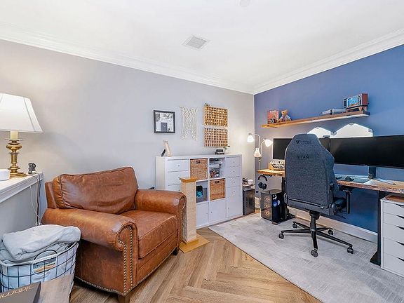 This home features a bright open layout with warm herringbone floors, a modern kitchen with granite counters and stainless steel appliances, and large windows that fill every room with natural light. The generous living and dining areas are perfect for entertaining or relaxing at home, while the separate home office nook adds versatility for today’s lifestyle.