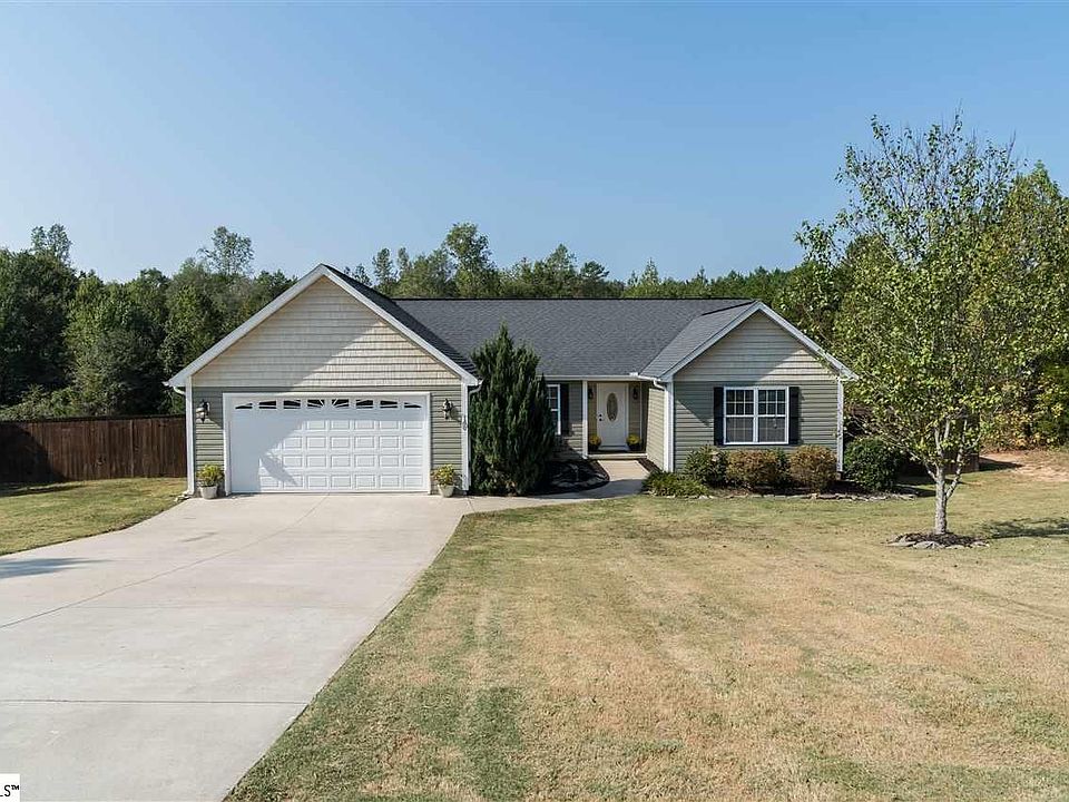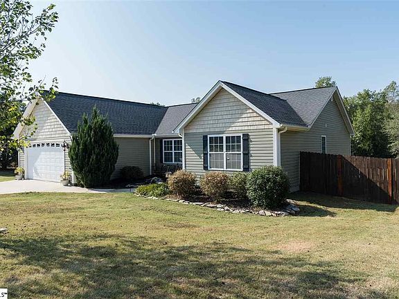 No HOA! Custom Built District 4 home is located minutes from Downtown Woodruff on a level 1 acre privacy fenced lot backing up to mature hardwoods. With beautiful horse farms, hardwood forest, and pastures Edwin Lanford Rd is a picture perfect spot to live. This home built by locally owned and operated Goddard Construction features quality craftsmanship and a fantastic open floor plan which includes a covered back porch and a crawlspace foundation. As you enter the home you will find all solid surface floors throughout the common areas. The large Dining Room is just to the left of the foyer and opens into an oversized Great Room featuring a gas fireplace. The kitchen complete with pantry, and stainless steel appliances has plenty of cabinet and counter space and has a Jenn Air gas range. The plan has 2 bedrooms that share a bath and a very large guest room with an ensuite bath which works great for guest. This bedroom also has solid surface floors. The master suite which is on the back of the home includes a tray ceiling, walk in closet, double vanity, and a separate tub and shower. The backyard is a fantastic place to relax on the covered porch or enjoying a bonfire in the fire pit. Don't miss an opportunity to tour this great home.