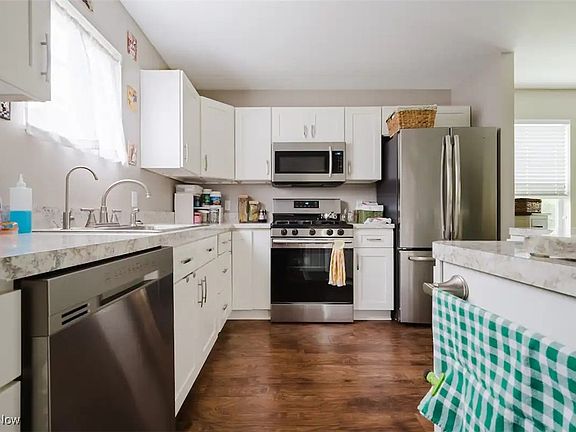 Welcome to this beautifully updated Colonial, built in 2006 offering space, style, and a prime location near a water park and downtown Akron. This 4 bedroom 3 full bath home boasts 2,352 sq. ft. of thoughtfully designed living space—which includes the fully finished lower level that was just renovated in 2023, perfect for extended living or large family. The heart of the home is the modern, open-concept Great Room with kitchen featuring a large center island that seats up to five—ideal for casual meals or hosting. Kitchen includes stainless appliances and Reverse Osmosis drinking water. The full bath completes the main level for everyday convenience. Upstairs, a large landing welcomes you to the primary suite which includes a walk-in closet and primary bath with double vanities, and additional door access from the hallway and primary bedroom. Two additional bedrooms on the second level offer comfort and flexibility for family or guests. The fully finished lower level expands your living space with a private bedroom with closet, sleek vinyl flooring, a newer (2023) luxury shower, and a spacious recreation room. Outdoors, enjoy the large, private yard (partially fenced), a wraparound porch perfect for relaxing, and a 2-car detached garage with overhead storage. Located in a friendly neighborhood just a half mile from downtown Akron, this home offers easy access to public transit, hospitals, major employers, and the city’s civic attractions. Nature lovers will appreciate the nearby Little Cuyahoga River, wooded views, and direct access to the Ohio & Erie Canal Towpath Trail. Move-in ready with an impressive list of updates—don’t miss this one! Schedule your private showing today!