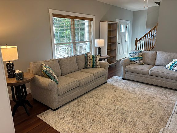 Welcome to your dream rental! Living, Dining, In-Kitchen Dining and upstairs office. This nearly new 2,467 sq ft home blends modern luxury with a peaceful country setting, just a 10-minute drive from downtown Hendersonville. Nestled on a sprawling 1+ acre lot, enjoy seasonal mountain views from the charming rocking chair porch perfect for morning coffee or evening sunsets. Inside, the open-concept living area features high-end Samsung Bespoke appliances and practical plank flooring, ideal for both daily living and entertaining.