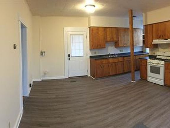A large 2 story unit with a back porch and lawn space. Hardwood floor and new laminate luxury plank flooring throughout the unit. Large kitchen, living room, two bedrooms downstairs, one upstairs, in unit laundry and off street parking.