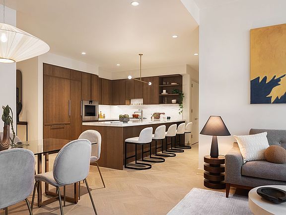 Residence 7L is a 1,610sf light-filled three bedroom, two and a half bathroom home offering a gracious layout, large closets and immense divided light windows.