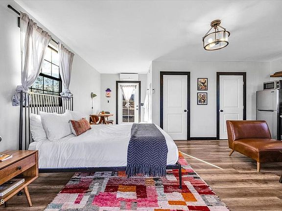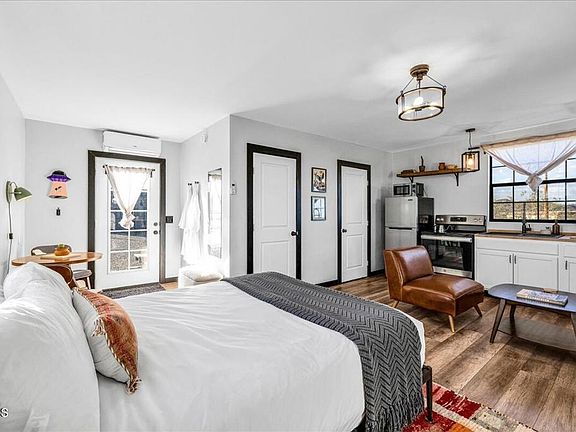 Tucked away on a peaceful 2.5-acre corner lot in Flamingo Heights, this beautifully remodeled midcentury studio cabin blends rustic charm with modern comfort. Fully furnished and thoughtfully designed, the open living space features a cozy lounge area, bedroom nook, updated kitchen, and dining corner--plus a full bathroom and convenient laundry closet with a stackable washer and dryer. Large windows fill the interior with natural light and frame stunning desert vistas. Step outside to enjoy shaded seating areas, a brand new spacious hot tub, and panoramic views that transform into an incredible blanket of stars at night. With stylish furnishings and finishes, and thoughtful upgrades throughout, this charming retreat was granted SFR status in 2023 and offers the perfect balance of tranquility and convenience-- private and secluded but just a short drive from Pioneertown, Joshua Tree, and local favorites like La Copine, Copper Room, and Tiny Pony.