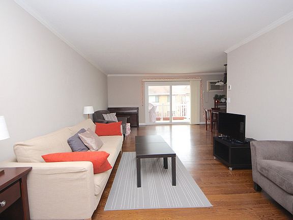 Beautiful updated condo in pristine condition. Located in the back of the complex, away from the road, it offers peace and quiet while still maintaining all the convenience of an in-town location. Newer kitchen with stainless steel appliances. Beautiful wood floors throughout. Washer and dryer in the unit. Gorgeous crown molding and loads of closet space. This unit comes with an oversized storage unit in the basement and assigned parking space. Pet friendly complex allows one dog or cat per unit. Grounds are well maintained with established plantings throughout. Beautiful pool, clubhouse and playground. Also for rent for $2,200 per month.