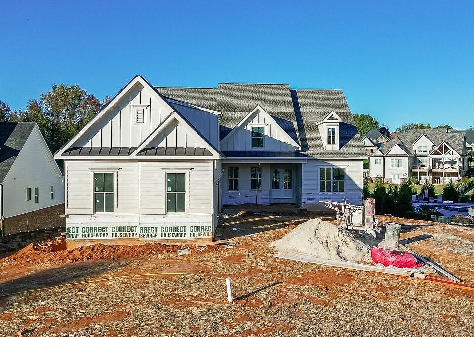 “Lot 17M- Charlotte C plan on unfinished basement with 3 car garage.” This gorgeous 4-bedroom, 4.5-bath ranch plan is exactly what you're looking for! Located in the amenity-rich golf community, Traditions of Braselton, and built by Hillgrove Homes. This new construction home is loaded with bonus features like an upgraded whole house window package, extensive trim, 8X8 storefront window, a WIFI compatible thermostat and irrigation system, Mohawk flooring, KitchenAid appliances, expansive concrete driveway, purposeful electrical plan design, double water heaters, black or bronze door hardware, and upgraded lighting and plumbing fixture package. The spacious gourmet kitchen overlooks the inviting family room, which features coffered ceilings, shiplap, a brick fireplace with a cedar mantle, and built-in custom cabinetry. The kitchen awards premium cabinetry with soft-close drawers and an oversized island, quartz countertops, a pot filler, stainless steel appliances, under-cabinet lighting, a custom tile backsplash, a farmhouse sink, and an expansive walk-in pantry with built-in shelving. The flexible dining/office space right off the foyer showcases stunning floor-to-ceiling trim. Additional features include 10-foot ceilings on the main floor, a mudroom, a guest bathroom on the main floor, and oversized closets, providing optimal storage. The relaxing primary bedroom offers a primary bath retreat with a tiled walk-in shower, dual showerheads, quartz countertops, custom tilework, frameless glass, upgraded cabinetry, and dual vanities. A true bonus is the large primary closet connecting directly to the laundry room with plentiful cabinets. Additionally, there's a junior primary suite on the main level with a generously sized bathroom and closet. Upstairs, you will find two secondary bedrooms, both with their own ensuite baths, and additional storage. The covered porch with/ outdoor fireplace overlooks a large, level wooded backyard, and there’s a golf cart garage for added convenience. This home is in the highly sought-after Jackson County School District, and the neighborhood is rich in activities like swimming, tennis, pickleball, fitness, golf, restaurant, and more. The estimated completion date is mid to late January 2026. Ask about our special preferred lender incentives!