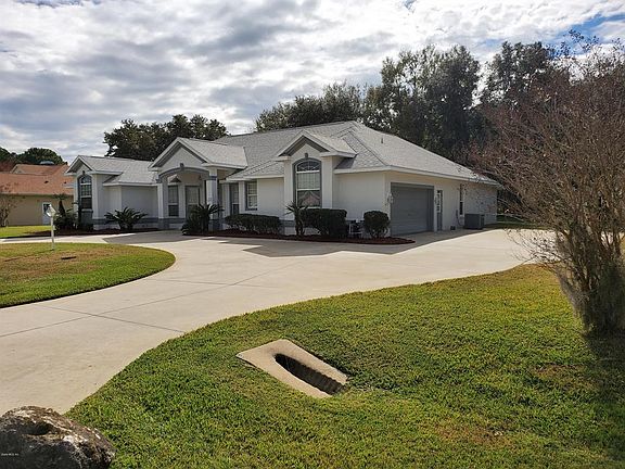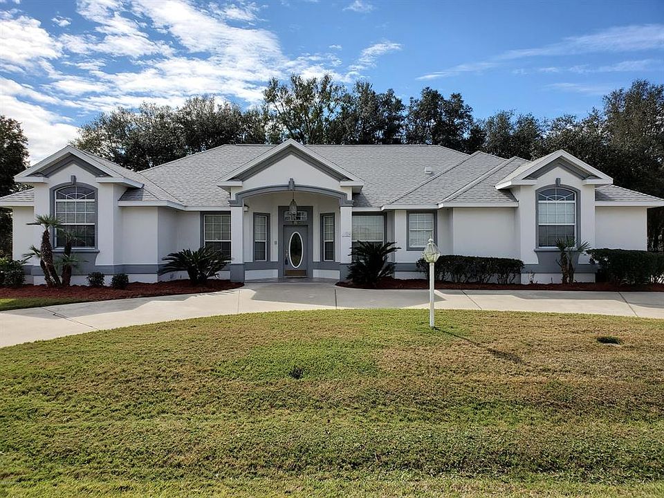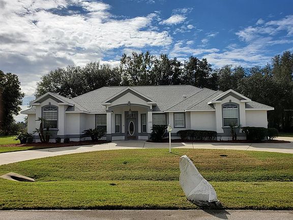 Beautifully designed custom built home near golf course with no HOA fees!! This 3-bedroom, 2-bath split plan pool home is situated perfectly on a large lot with a private backyard. Great curb appeal with large circular drive, fresh paint and large driveway. Yard is landscaped and has irrigation system and storage shed. Inside the home every room is very large with a grand central fireplace. The kitchen has a huge open concept design with entry from garage and laundry room. Enjoy the peace and quiet from your back lanai that overlooks a beautiful, newly refinished, screened in pool and private backyard. HVAC replaced in 2010 and roof is just a year old!!