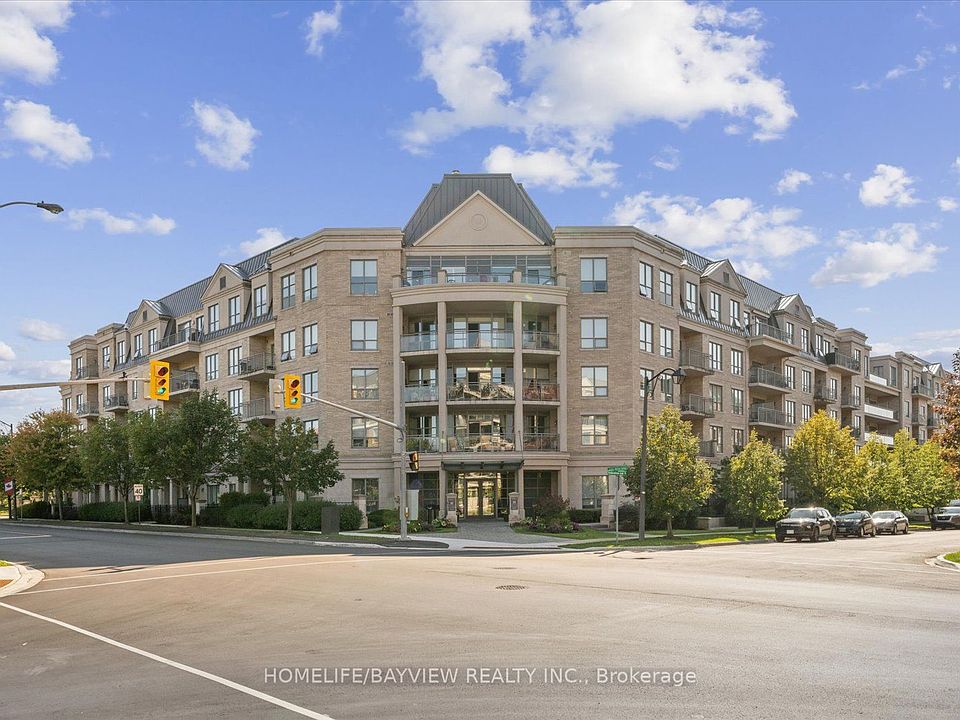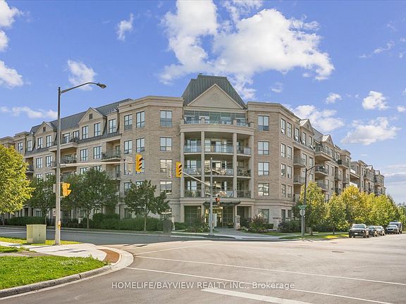 Discover Resort-Style Living At "Ridgewood" In Aurora, With This Updated 1-Bedroom Plus Den Condo Offering 736 Sq Ft Of Open-Concept Space And A Private Balcony Showcasing Stunning Northern City Views. Inside, Enjoy Coffered Ceilings, 9 ft heights, And A Stylish Kitchen Featuring White Cabinetry, Granite Countertops, A Breakfast Bar, New Backsplash With Under-Valence Lighting, & Engineered Hardwood Floors. This Home Has Been Freshly Painted Throughout, Enhancing Its Bright And Welcoming Atmosphere. The Primary Bedroom Fits A King-Sized Bed And Offers Ample Closet Space, While The Den Serves As an Ideal Office Or Dining Area. The Luxurious Bathroom Includes A Soaker Tub And A Glass Shower Door. Exceptional Community Amenities Include A Saltwater Pool, BBQ Area, Gym, Steam Room, Theater Room, Bike Racks, And Party Room, With Concierge Services For Added Security and Convenience. There are Plenty of Visitor Spots & Guest Suite Available For Friends. Pets Allowed with Restrictions. You're Just Minutes From Walking Trails, The Stronach Rec Complex, Aurora Leisure Complex, The Aurora Seniors Centre, Sheppard's Bush, Top Schools, GO Train Station, Dining & Shopping, as well as Quick Access To Highway 404. This Design is Unique & Spacious & You will Not Want To Miss This One!!