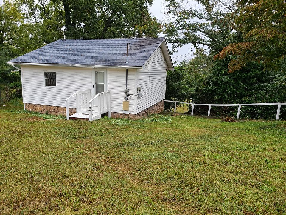 This is a great starter home or a good investment for rental property. A nice sidewalk leads you to the back door which is the main entrance with a private deck. There are two bedrooms and one bath. One bedroom has a private entrance on the street side. The kitchen has a refrigerator and a breakfast bar. The roof is less than 7 years old. This home does have space under the deck in the crawl space to tuck a few tools, bicycle or push mower. On street parking. Convenient location.