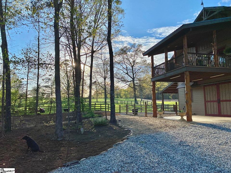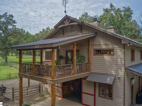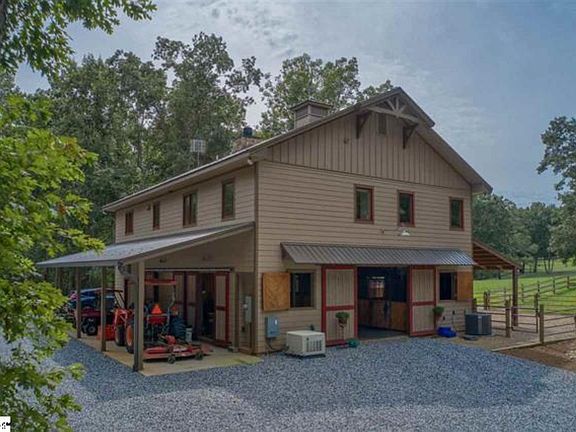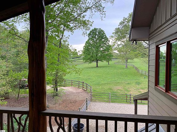 Located in the bucolic Enclave of Fairview Farm, consisting of 15 unique equestrian estates, resides this one of a kind 12.34 acre property. Featuring an exquisite custom built Craftsman style home over a state of the art 4 stall barn. Convenient to Tryon International Equestrian Center, FETA Trail System, GSP airport and to the communities of Landrum, Tryon, Greer and Spartanburg. The living area features an open floor plan. Beamed cathedral ceilings, hickory plank hardwood flooring throughout the house. Gorgeous knotty alder solid wood interior doors along with a tobacco barn reclaimed wood accent wall. Rock wood burning fireplace with gas starter. The windows provide a panoramic view of pastures and woods. The fabulous elevated deck off the dining area, anchored by cedar columns, provides a serene setting to enjoy the outdoors. The kitchen has a dual fuel gas top Wolfe range, under counter microwave, Bosch dishwasher, beautiful black granite countertops and more cabinetry than a house twice it’s size. Note all the cabinets in the walk in pantry, the master and guest bathrooms. The barn is a culmination of 4 generations of design built by this owner and features function, utility and ease of use and maintenance. There is the convenience of A laundry room, half bath and mudroom on the barn level. There’s 4 12 x 12 stalls with rubber mats and partitions that can be moved to enlarge the stall for birthing or for an ill horse. The stalls connect to large paddocks with a grid system underneath to keep mud to a minimum. Pea gravel completes the footing. The aisle and wash rack also have rubber mats. There's agricultural fans, a spray fly system and spray foam finished ceilings, tack and equipment room plus climate controlled saddle storage in mudroom. There’s a 12 x 24 utility shed for hay and other equipment. The attention to detail in the barn carries into the workmanship of the house. Dual fuel Trane HVAC provides energy efficiency as well as a 1,000 gallon buried fuel tank for backup. The Cummings WHDE whole house propane generator keeps you warm or cool all year regardless of the weather. Also an energy efficient Rinnai tankless water heater. Go to Enclave at Fairview Farms.com for additional information on the community. With approval of the HOA, an additional house can be added to this property with a minimum of 2400 SF.