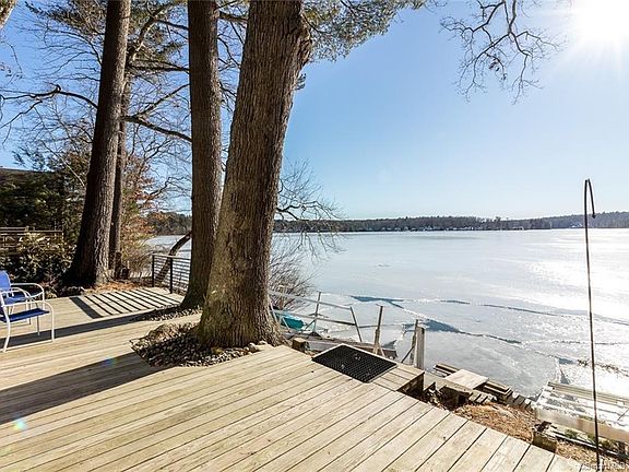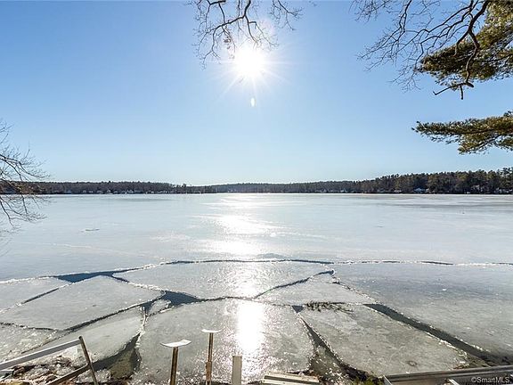 Unique opportunity to to enjoy Alexanders lake all summer long or year round in this completely redone lake front cottage. Remodeled in 2017 from the studs in, this cottage has an eclectic vibe, featuring vaulted ceilings, hardwood floors, ceramic gas stove for ambiance , and a slider to large deck overlooking the lake. Other features include an out building with a sauna which could be used as an office or studio, a storage shed and your own private dock. Alexanders Lake is said to be one of the cleanest lakes in Ct.Land lease is approx. 5700 per year