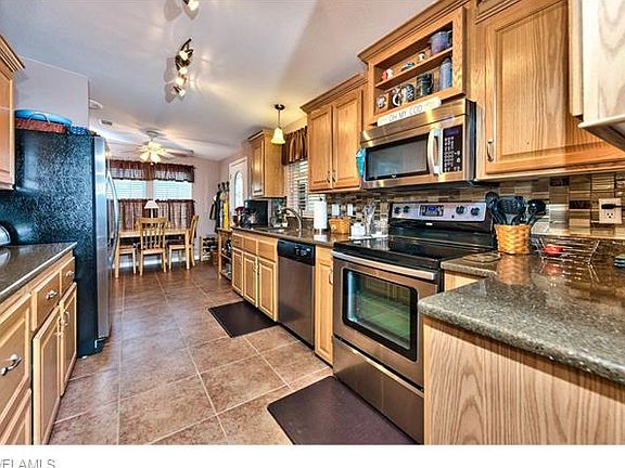 Purchase this Beautiful (nearly new (4 1/2 years young) double wide custom home and own your own land! 3 Full bedrooms with built in Murphy Bed in one of the bedrooms. 2 full baths with dual sinks in master bath and tub with shower in guest bath. Gorgeous kitchen with solid surface counter tops, stainless steel appliances and beautiful cabinets as seen in photo's. Tile throughout with laminate in master bedroom. All hurricane windows plus Bahama shutters for your enjoyment and peace of mind. Very large screened lanai 20 X 14 plus huge utility shed with double doors 10 X 12. Beautiful orchid tree in back yard. West Wind Estates is a 55 plus community with low fees of $225 quarter. Only a few miles to downtown Naples & Marco Island.