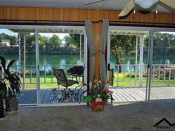 Living on the river at its finest. 2023 updated kitchen & bathroom. Incredible location in Leisure Lakes on the river, 55+ Community. Beautiful large deck (8X32 front & 8X40 on side with steps & ramp to carport (room for 3 cars). The largest, most private lot with the best view in the park. This corner lot is located at the south end of the park. Double sliders open to the deck offering incredible view. Large private side yard with new shed in 2022 at the cost of $6,000 installed. Park space rent of $480 month covers garbage, water & sewer (manager mows the common areas). Natural gas to range, central heating is gas & unit cooling unit. Breathtaking views from many windows of the Sacramento River. Great fishing walking distance away!