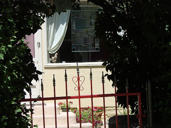 Unique stone studio, has been used as a studio/workshop/garage. Lots of shrubbery and trees for privacy. Large fenced dog run or garden. Close to downtown.
