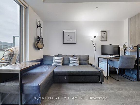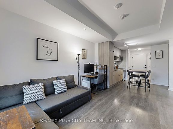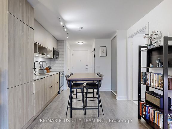 Welcome to this thoughtfully designed one-bedroom plus den suite at Canary Commons, offering stylish interior space and a generous balcony, as per the builder's plan. The spacious den, complete with a custom door, is perfect as a private home office or can easily function as a second bedroom. East-facing windows fill the open-concept living and dining area with natural morning light, complemented by hardwood flooring throughout. The sleek kitchen features stainless steel appliances, contemporary cabinetry, and tasteful finishes. Enjoy the convenience of in-suite laundry and high-speed internet included in the maintenance fees. Residents enjoy fantastic building amenities, including a rooftop terrace with BBQs and fire-pits, a fitness space, lounge, co-work space, yoga studio, hobby room, child play room, and more. Ideally located in Toronto's vibrant Downtown-East, you're just steps to trendy shops, cafes, the Distillery District, Corktown Commons, Cooper Koo Family YMCA, and scenic Cherry Beach. With easy access to Queen and King Streets, public transit, the Don Valley Parkway, and the Gardiner Expressway, this home truly surrounds you with the best of urban living.