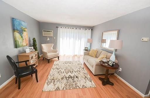 Affordable and convenient first floor, 2 bedroom unit located between Oak Grove and Malden Center Stations. Eat-in kitchen with gas cooking is open to living area with sliders to private patio. Bedrooms are good size and offer great closet space. Fresh paint, newer laminate flooring, full ceramic tile bath, 2 wall a/c units, on site laundry, extra storage in basement and one assigned parking space. This well-maintained complex has high owner occupancy and is pet friendly. Walk score of 81 means easy stroll to shops, restaurants, transportation (Orange Line), playgrounds and many other area amenities.