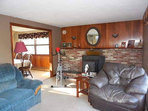 Move-in-condition 3 bedroom split level with 1.5 baths and an attached one car garage. Sunny living room with bay window and woodstove in the fireplace. Spacious and updated eat-in kitchen with newer appliances. Newer roof, 200amp electrical, water treatment system, and oil tank. Open yard and close proximity to highways. Nice and clean!