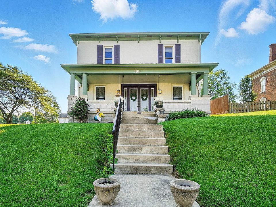 Welcome to this beautifully maintained 3-bedroom, 2.5-bath home offering over 2,300 sq. ft. of living space, full of warmth, charm, and functionality. The inviting covered front porch opens into an oversized living room featuring two fireplaces that add character and charm. The kitchen is designed for both style and practicality, showcasing custom wood cabinetry, granite countertops, stainless steel appliances, and a center island with a cooktop—ideal for everyday living and entertaining. This home has been updated with comfort and efficiency in mind, including a new water line, natural gas supply, 200-amp electric service, two HVAC systems (one per level), an additional wall unit in the rear, a new water heater, and energy-efficient double-pane windows. A two-story detached garage (22x28) with a spacious loft provides excellent additional storage or potential for a workshop or studio. Blending modern convenience like a heated master bathroom floor with traditional charm, this home is ready for its next chapter. Come take a look—you won't be disappointed